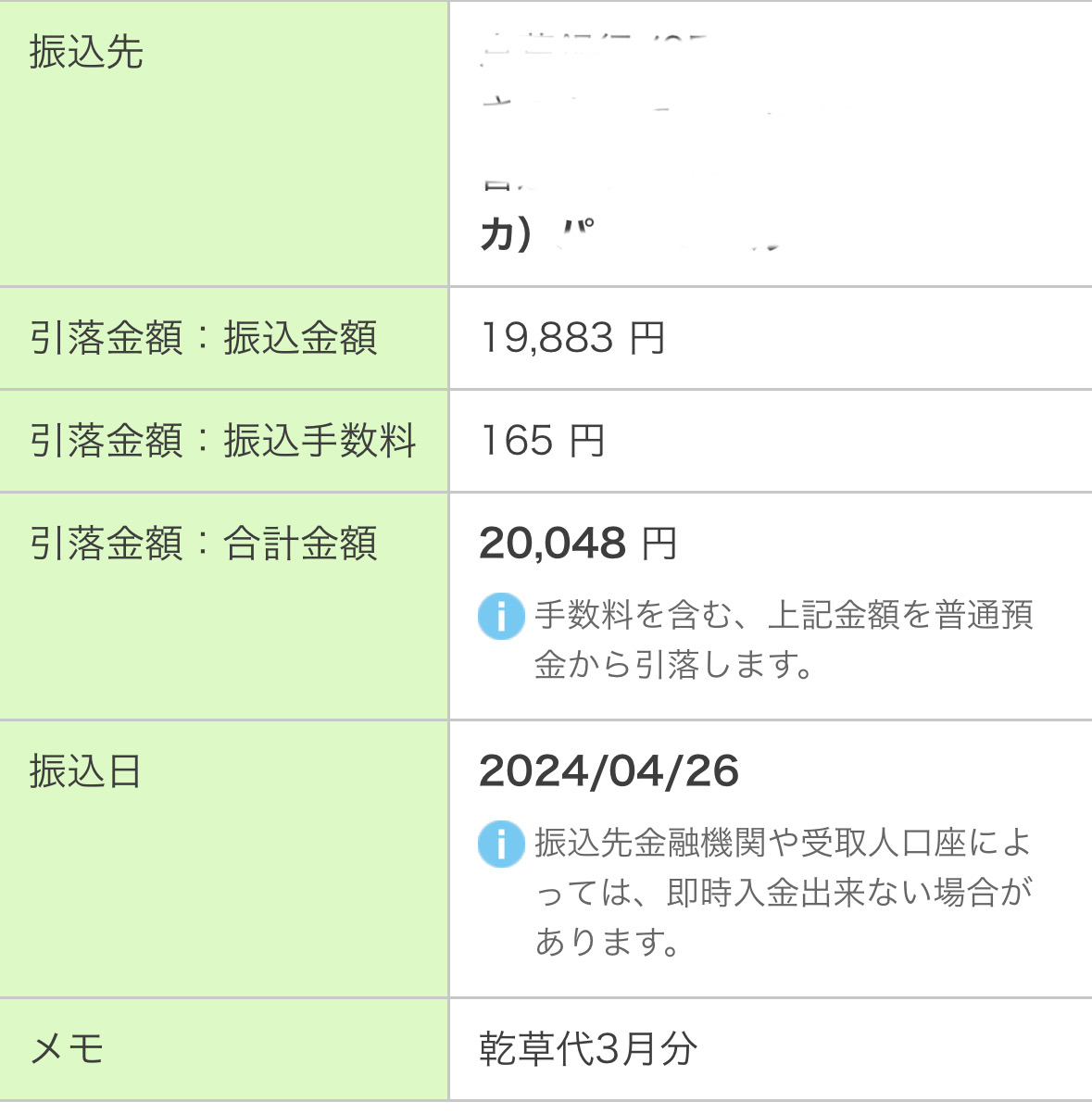 フィードミックスの支払いがあった場合